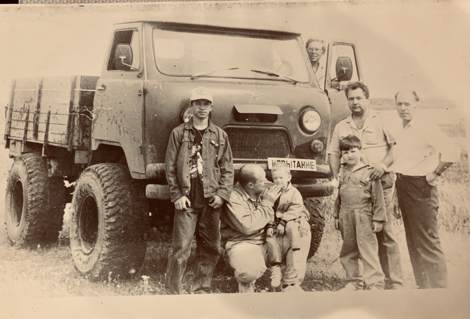 Свои опыты на колесных машинах мы начали в 1996 году, с установки на стандартные мосты УАЗ колес от кировской тележки, т.к. в те времена не было ни "Трэкола" ни "Арктиктранса" и резину приходилось изготавливать вручную, само собой та конструкция не выдержала проверку, мосты УАЗ выходили из строя, хотя машина двигалась очень хорошо.