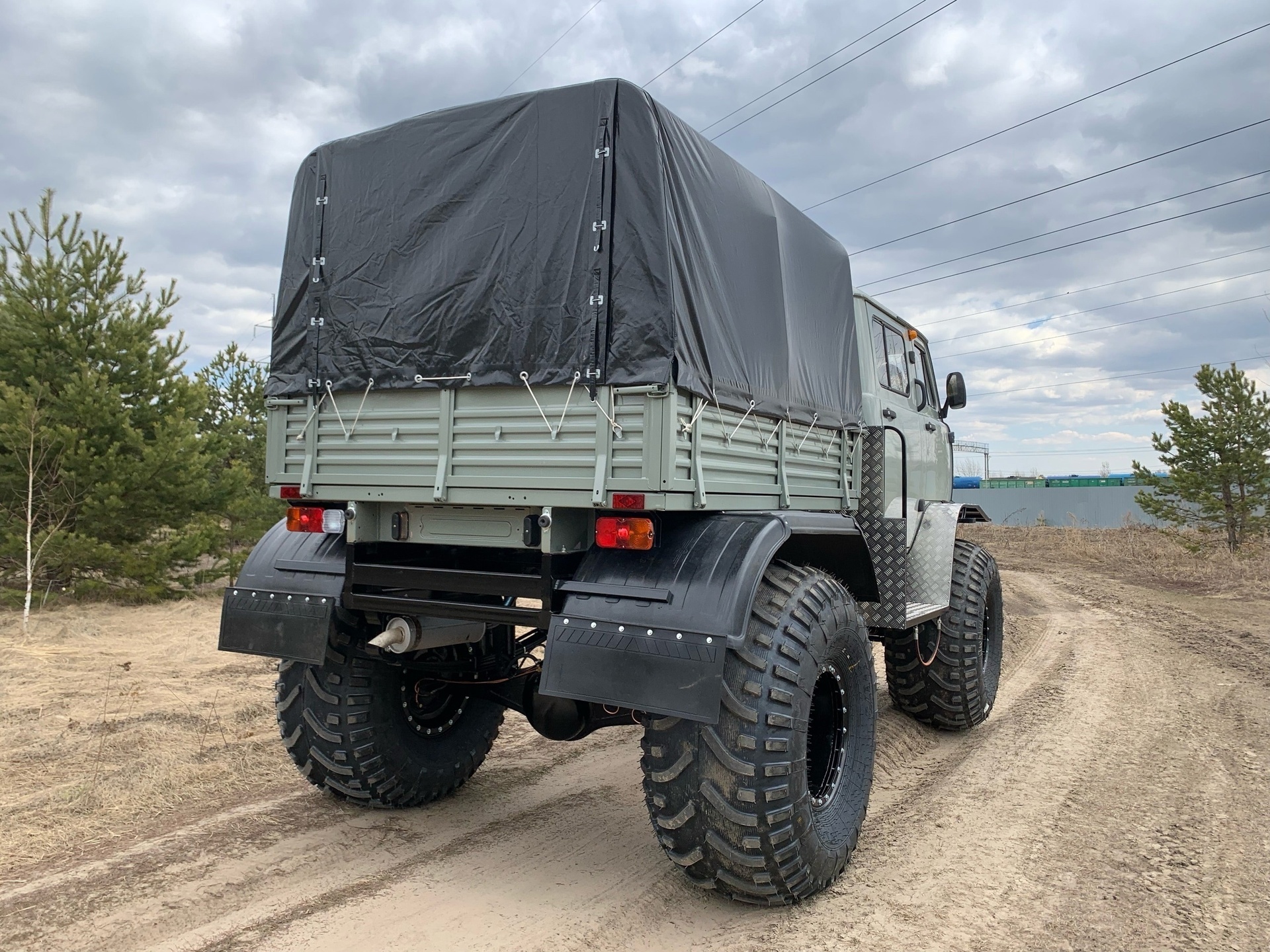 Усиленная рама, полностью рессорная подвеска, система подкачки шин, блокировки, дисковые тормоза передней оси, большой люк - входят в стандартную комплектацию снегоболотохода.